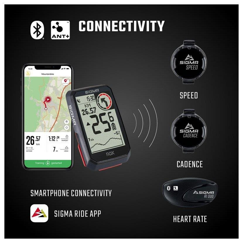 Prostřednictvím Bluetooth lze data z cyklopočítače odesílat do smartphone a v aplikaci SIGMA RIDE je ukládat a vyhodnocovat. Nejdůležitější data a statistiky je možné přehledně uspořádat do barevných datových polí, rychle je zobrazit na displeji a pohodlně vyhodnotit.