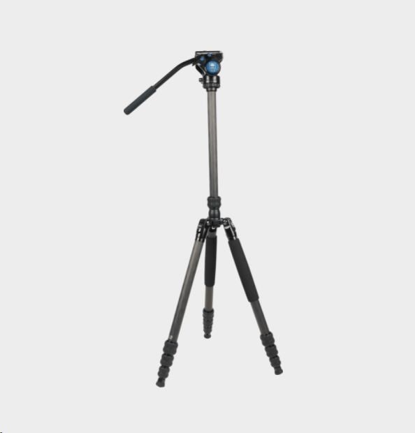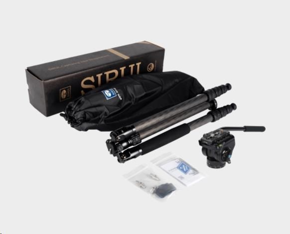 Profesionální stativ Sirui Traveler VC s video hlavou VA-5 určený pro kameramany a malé lehké pozorovací dalekohledy. Stativ je vyroben z uhlíkových vláken.