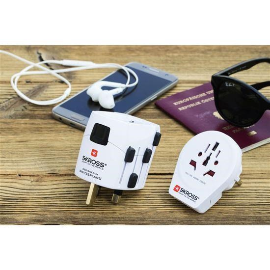SKROSS cestovní adaptér PRO World & USB, 6,3A max., uzemněný, vč. univerzální USB nabíječky, pro celý svět