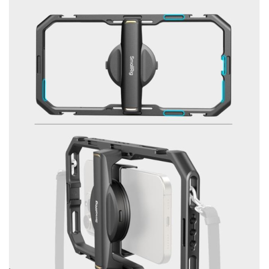 Vylepšená univerzální klec je vybavena několika otvory se závitem 1/4"-20 a úchyty pro studenou patku, což umožňuje rozšíření o širokou škálu profesionálních videozařízení.