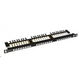 High-density 0,5U nestíněný patch panel CAT6 24 portů s vyvazovací lištou, černý.