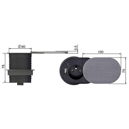 vestavná elektrická zásuvka pro pracovní desky a stoly s USB rychlonabíječkou