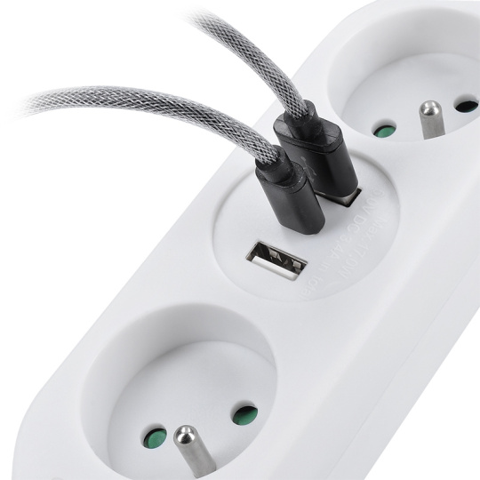 Prodlužovací napájecí kabel se dvěma zásuvkami a USB nabíječkou. Skladný, výkonný, lehce přenosný. Ideální pro nabíjení elektronických zařízení na cestách..... více