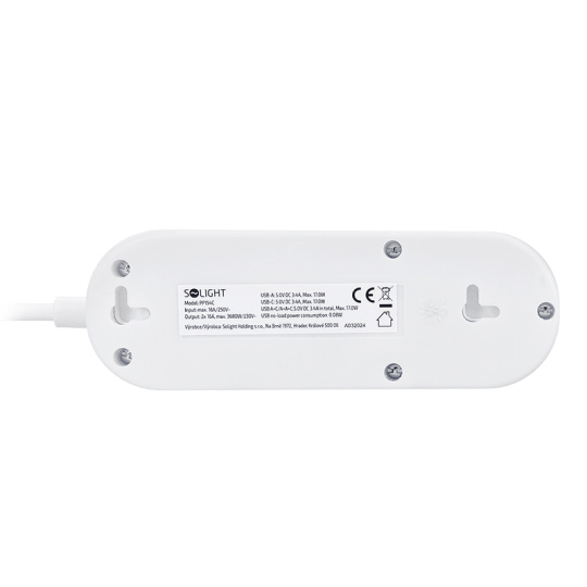 Solight 2z + USB A+C 17W, cestovní prodlužovací přívod 1.5m, bílý