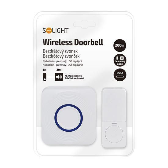 Solight bezdrátový zvonek, bateriový + USB, 200m, bílý, learning code