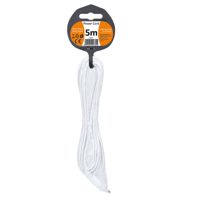Solight flexo šňůra, 2x 0,75mm2, bílá, plochá, 5m
