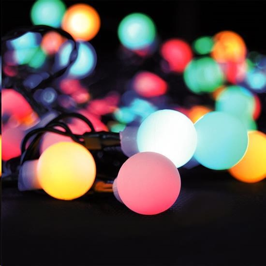 Solight LED 2v1 venkovní vánoční řetěz, koule, dálkový ovladač, 200LED, RGB+bílá, 20m+5m, 8 funkcí, IP44