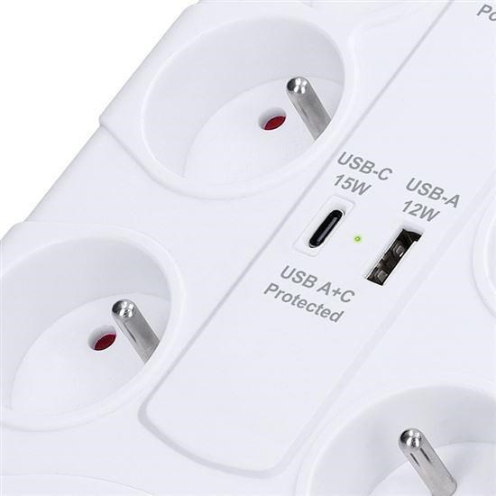Spolehlivá přepěťová ochrana s integrovanou USB nabíječkou chrání vaše zařízení proti náhlým výkyvům napětí. Díky osmi zásuvkám a dvěma USB portům je ideální do domácnosti i kanceláře. S maximální zátěží až 3680 W zvládne i energeticky náročnější spotřebiče.