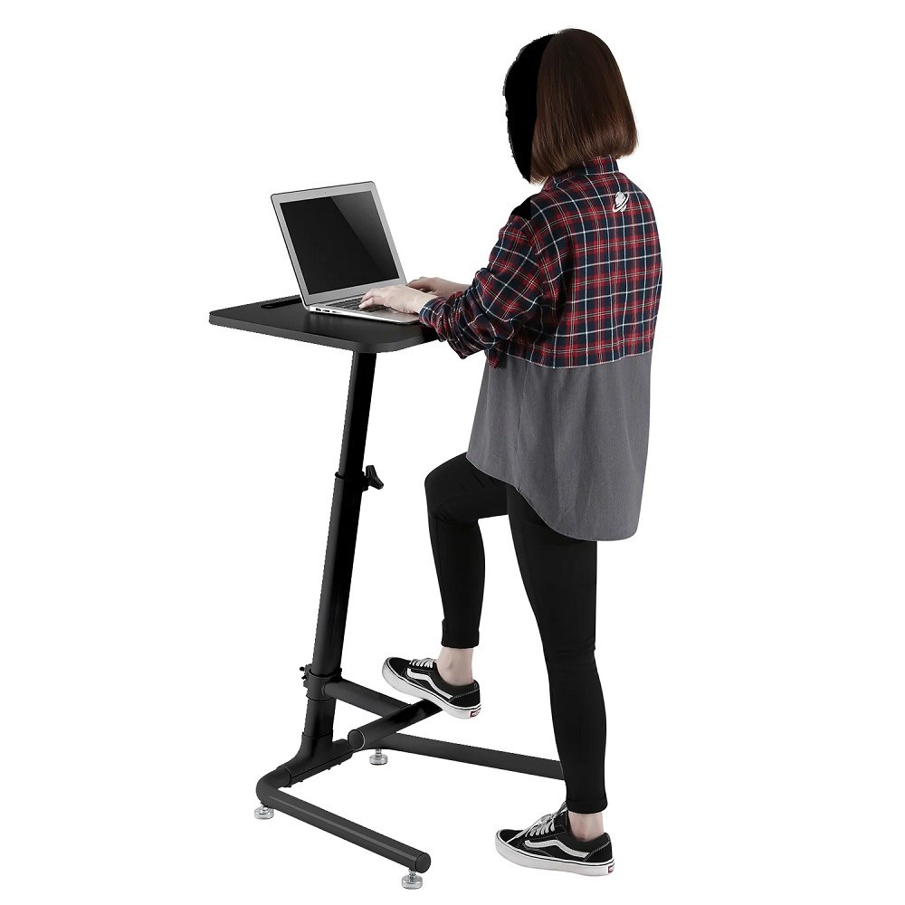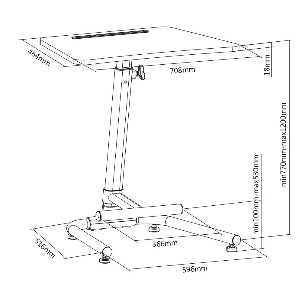 Stolek na notebook laptop Fiber Mounts M8C49B Stolek na notebook nebo laptop, snadné nastavení výšky pro práci vsedě nebo vestoje 77-120cm, rozměr stolku 708x464mm, drážka na tablet, podnož s nastavením výšky 100-530mm, rozměr podstavy 596x516mm, nosnost 8kg Velmi pěkný, stabilní a spolehlivý stolek na notebook, laptop nebo iPad. Výškové polohování od 77cm do 120cm je extrémně snadné díky vztlakové pružině - nahoru vyjíždí velmi lehce a pokud chcete výšku snížit, stačí povolit jistící matici a zatlačit na horní desku. Konstrukce je osazena podnoží s výškovým nastavením od 10 do 53cm - pokud na stolku podnož nechcete, nemusíte ji instalovat. Velmi pěkné provedení v černé barvě. Stolek můžete využít i jako pracovní stanici, prodejní pultík, podstavu na projektor, je vhodný taktéž na prezentace nebo výstavy, do stánků atp. Stolek má vynikající stabilitu díky postavci o rozměrech 596x516mm osazeném 4 protiskluzovými nožičkami a poctivé velmi pevné konstrukci. Maximální doporučené zatížení horní desky z MDF je 8kg. Na stolek poskytujeme prodlouženou záruku na 5 let. Stolek na notebook nebo laptop s nastavením výšky, snadná změna pozice pro práci vsedě nebo vestoje, podnož, pevná konstrukce, stabilita a spolehlivost - Fiber Mounts M8C49B Technické údaje: nosnost 8 kg rozměry horní desky 708 x 464 mm velmi rychlé a snadné nastavení výšky stolku díky vztlakové pružině nastavitelná výška stolku 77 až 120 cm možnost práce vestoje nebo vsedě - extrémně rychlá změna pozice nastavitelná výška podnože 10 až 53 cm podnož nemusí být na stolku, je odnímatelná špičková poctivá konstrukce rozměry podstavy 596 x 516 mm protiskluzové nožky na podstavě s vyrovnáním dle podlahy vynikající stabilita a bezpečnost barevné provedení černé nebo bílé záruka 5 let Výškové nastavení stolku na notebook je extrémně snadné a rychlé díky zabudované pružině - Fiber Mounts M8C49B Praktický společník pro Vaše prezentace, výstavní stánky, kanceláře nebo domácnosti, vhodný i do malých prostorů. Stolek vyniká spolehlivou konstrukcí, která je přitom velmi pěkná. Díky snadné výškové polohovatelnosti (vztlaková pružina) můžete kdykoliv pracovat vsedě nebo naopak vestoje. Určitě oceníte i praktickou podnož, kterou lze taktéž výškově regulovat, v případě potřeby ji můžete i ze stolku demontovat. Spolehlivé, praktické a pěkné řešení pro Vaši práci na notebooku..
