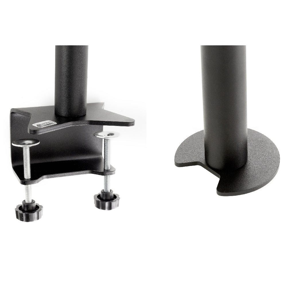 Stolní držák na 6 monitorů Edbak SV17 Stolní držák na 6 monitorů nebo televizorů s úhlopříčkou 17"-27", parabola, plně nastavitelné pozice monitorů, profesionální kvalita, VESA standardy 75x75 a 100x100, barva černá, nosnost 60kg Profesionální parabolický stolní držák na 6 monitorů 17-27". Nastavitelná poloha každého monitoru dle potřeby: otáčení do stran, naklápění, korekce roviny, pivot, posun do stran. Nastavení potřebné výšky vodorovných nosníků s monitory. V balení najdete 2 typy stolních úchytů: svěráky na uchycení na okraje stolů nebo šroubovici pro uchycení do průchodek. Systém vedení kabeláže. Nejvyšší kvalita, silnostěnný materiál. Podpora VESA standardů 75x75 a 100x100, barevné provedení černé, nosnost 60kg. Záruka 10 let. Profesionální stolní držák na 6 monitorů v parabole Edbak SV17 Technické údaje: nosnost 60kg na monitory s úhlopříčkou 17" až 27" VESA standardy 75x75mm a 100x100mm polohování vzdálenosti monitorů mezi sebou 223mm nastavení sklonu +/- 50° otáčení monitoru do stran +/-45° funkce pivot uchycení na stolové desky o síle 10-55mm (průchodka) nebo 10-80mm na okraj stolu nejvyšší kvalita, silnostěnný materiál, profesionální výrobek velmi snadná a rychlá montáž barva černá záruka 10 let Držák na 6 monitorů displejů Edbak SV17 Stojan na 6 monitorů Edbak SV17 podporuje VESA standardy: VESA 75x75 VESA 100x100 možnost zakoupení rozšíření na VESA 200x100 a 100x200 možnost zakoupení rozšíření na VESA 200x200.