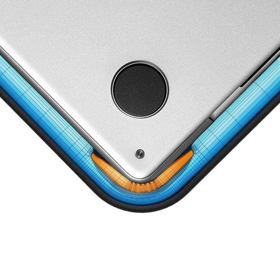 Jak co nejlépe ochránit svůj milovaný Mac proti poškrábání a poškození při pádech? Tento úkol s klidem svěřte novému pouzdru tomtoc. Jeho rohy a hrany jsou vyztuženy originální technologií CornerArmor. Ta splňuje vojenský standard pro pádové zkoušky. Nejde ale jen o ochranu nejzranitelnějších částí zařízení. Uvnitř pouzdra najdete velmi měkkou plyšovou podšívku a polstrování, se kterým bude notebook doslova jako v bavlnce. Poškrábání šasi zipem pak zabrání ochranný hřeben po celém jeho obvodu - jeden z mnoha malých detailů, které znamenají obrovský rozdíl.Zip YKK a inovativní recyklované tkaniny