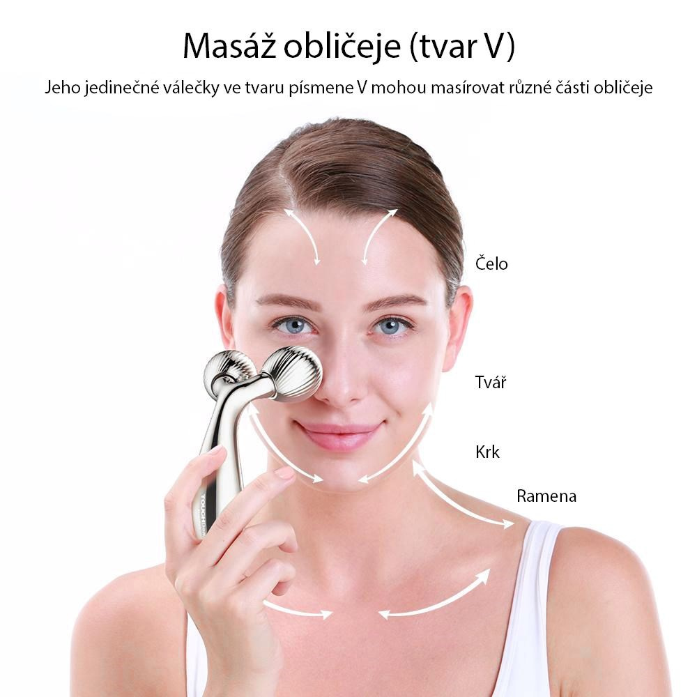 Unikátní válečky ve tvaru „V“ jsou navrženy pro masáž obličeje, ale stejně dobře je využijete na hrudník, paže nebo nohy. Ergonomický design zaručuje pohodlné používání a snadné držení, ať už jste doma, nebo na cestách.