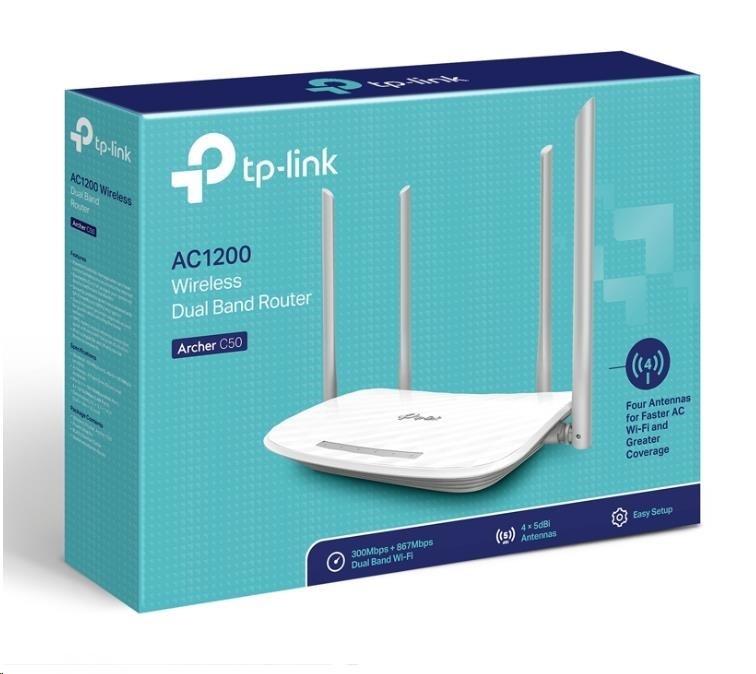 TP-Link Archer C50 WiFi5 router (AC1200, 2,4GHz/5GHz, 4x100Mb/s LAN, 1x100Mb/s WAN)