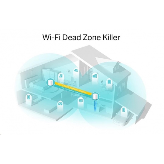 - Jedna sjednocená síť: Více jednotek tvoří domácí síť, která automaticky vybere nejlepší spojení, když se pohybujete po domácnosti.