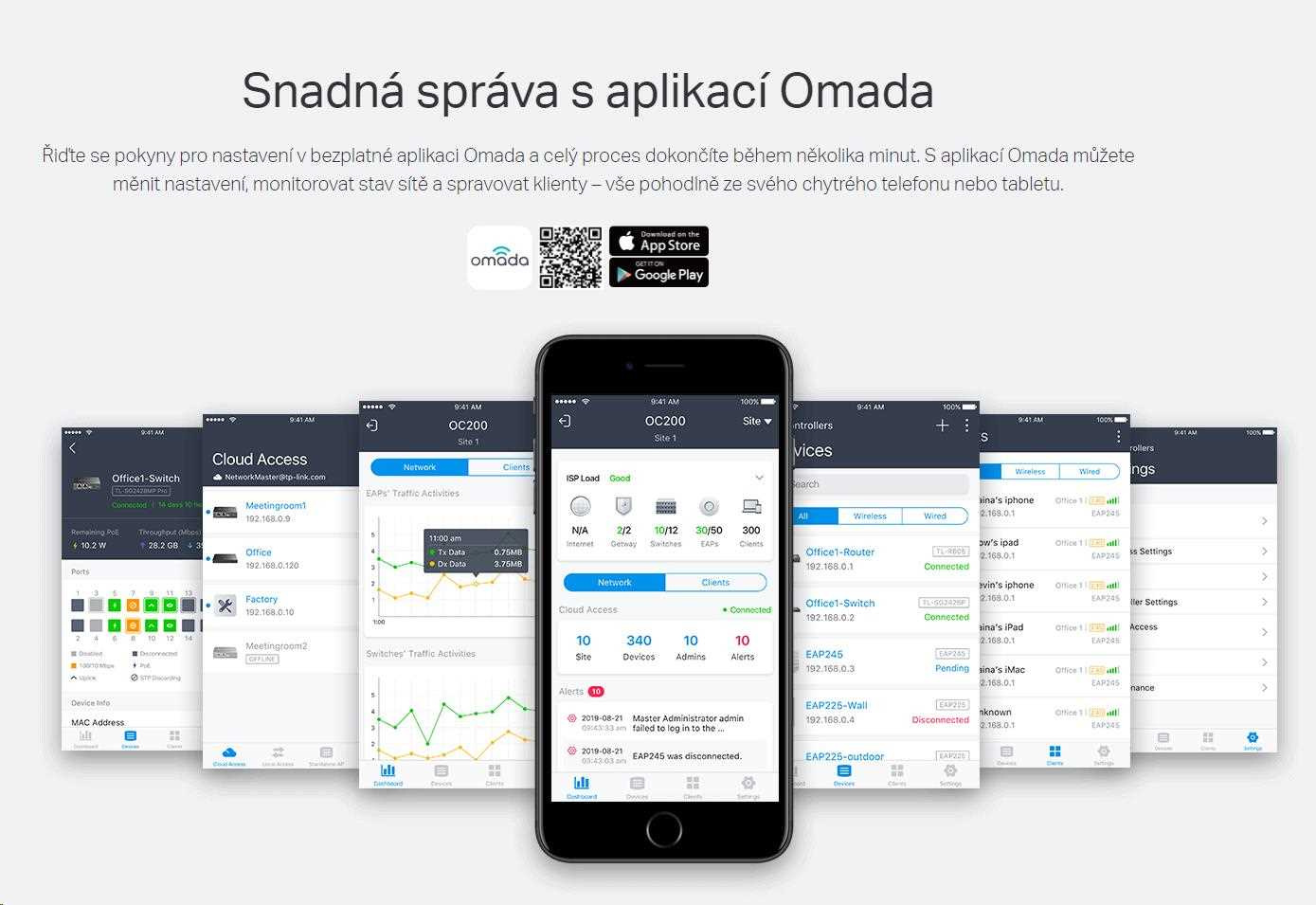 - Centralizovaná cloudová správa: Integrace s platformou Omada SDN umožňuje cloudový přístup a vzdálenou správu.