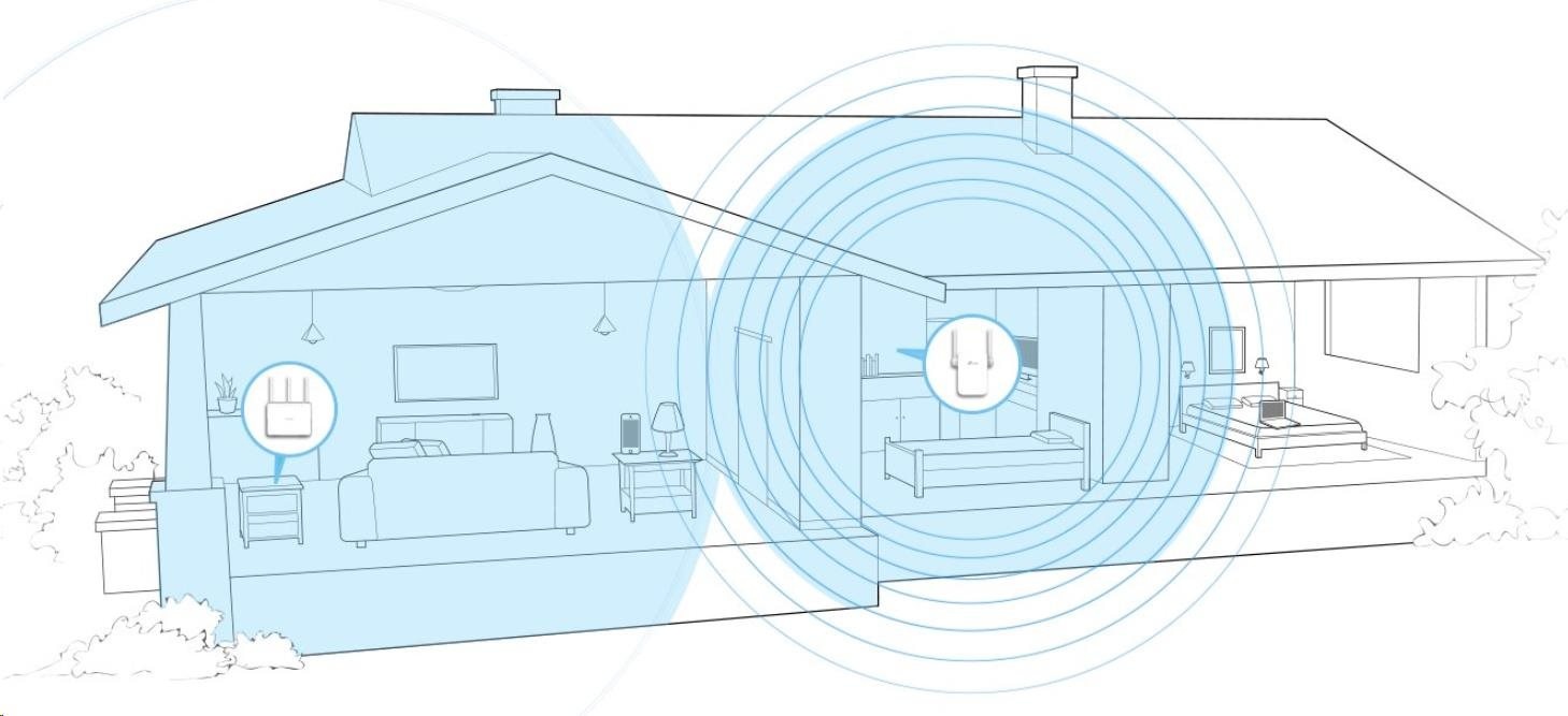 - Oživí mrtvé zóny ve Wi-Fi síti díky silnému rozšíření s kombinovanou rychlostí přenosu dat až 1,2Gbit/s