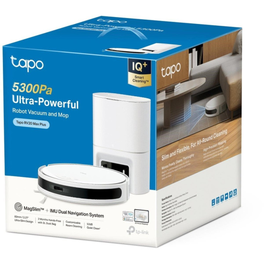 TP-Link Tapo RV20 Max Plus robotický vysavač s mopem a stanicí (LiDAR, 2,4 GHz, BT, bílý)