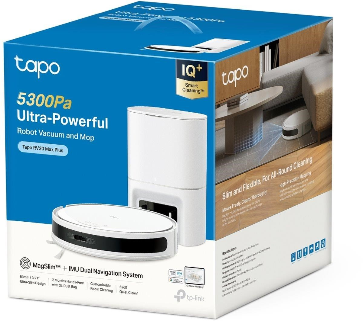 - Tapo IQ+ Smart Cleaning™: Slouží jako mozek robota. Je poháněn mnoha senzory a pokročilými algoritmy, takže mu můžete spolehlivě svěřit svůj domov do rukou.