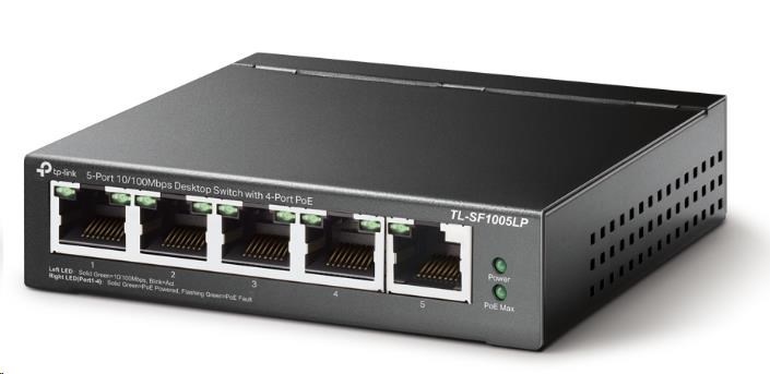 TP-Link switch TL-SF1005LP (5x100Mb/s, 4xPoE, 41W, fanless)