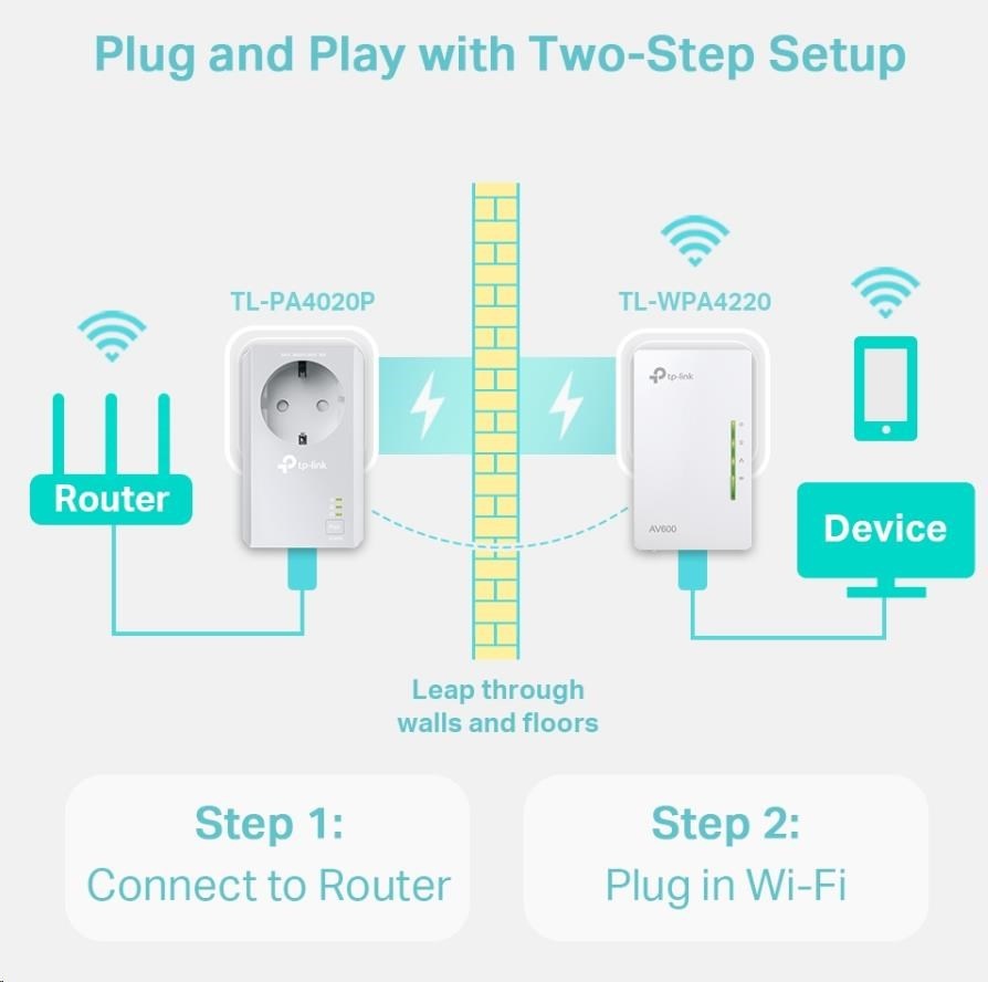 | Package Contents | AV600 Powerline Wi-Fi Kit 1 × TL-WPA4220 (Wi-Fi Extender) 1 × TL-PA4020P 2 × Ethernet Cables 1 × Quick Installation Guide |