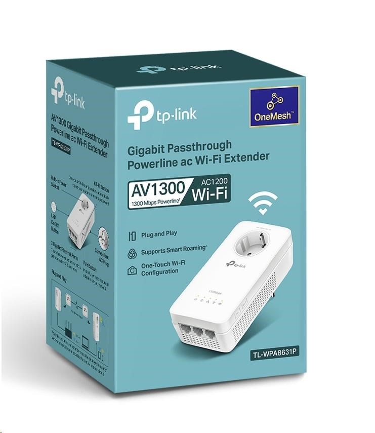 TP-Link TL-WPA8631P OneMesh/EasyMesh WiFi5 průchozí powerline adaptér (AC1200,AV1300,2,4GHz/5GHz,3xGbELAN)