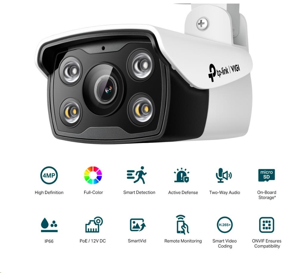 TP-Link VIGI C340 (6mm), 4MP, Bullet, PoE, IR 30m, Micro SD card