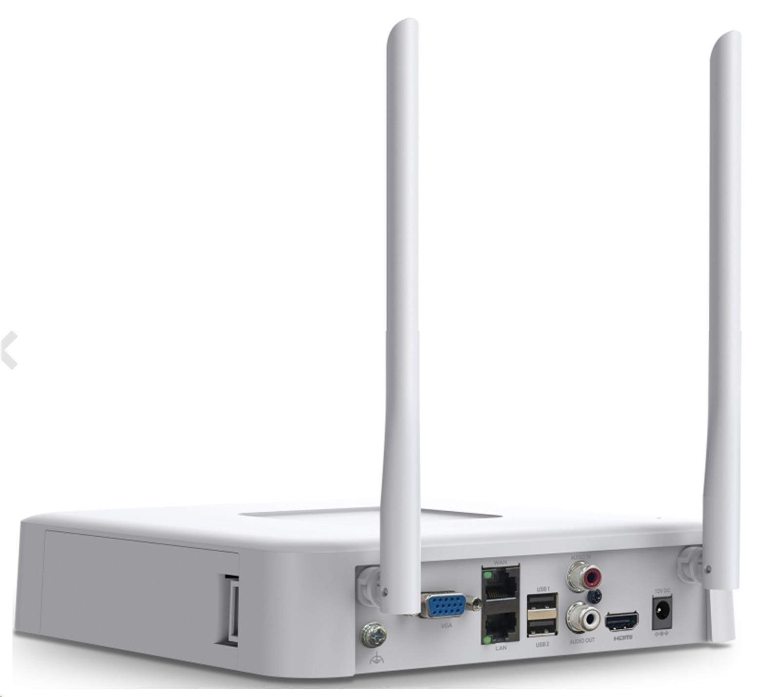 - Bezdrátové připojení: NVR disponuje integrovaným Wi-Fi modulem, což umožňuje připojení bezdrátových kamer a jednodušší instalaci.