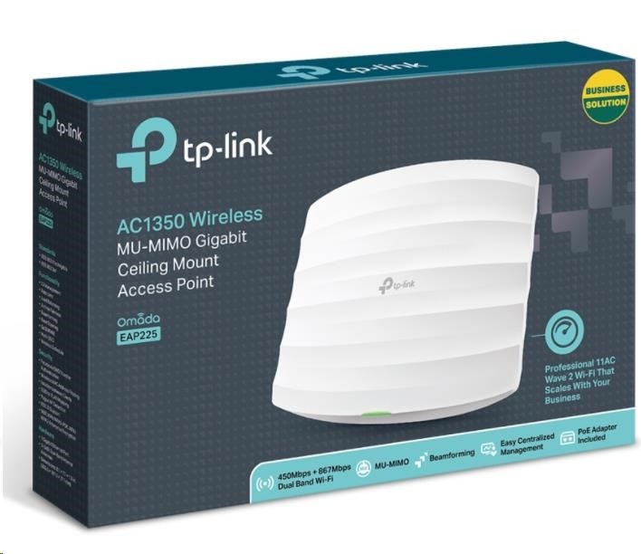 TP-Link EAP225 OMADA WiFi5 AP (AC1350,2,4GHz/5GHz,1xGbELAN,1xPoE-in)