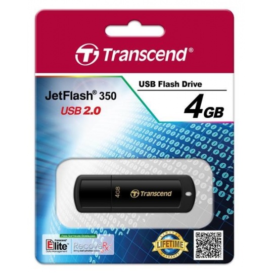 TRANSCEND Flash Disk 4GB JetFlash®350, USB 2.0 (R:13/W:4 MB/s) černá
