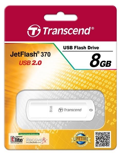 TRANSCEND Flash Disk 8GB JetFlash®370, USB 2.0 (R:13/W:4 MB/s) bílá