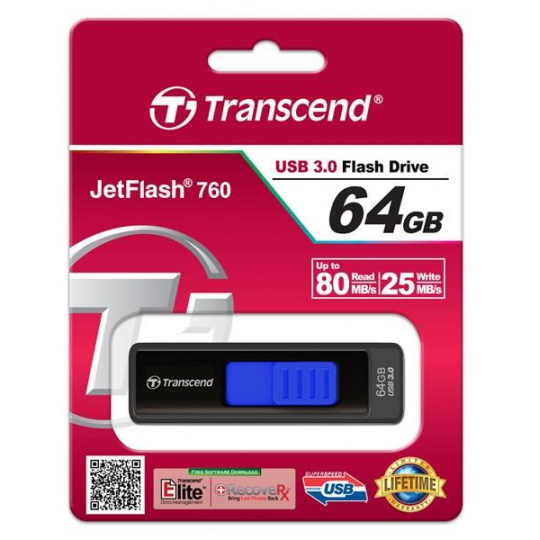 TRANSCEND Flash Disk 64GB JetFlash®760, USB 3.0 (R:80/W:25 MB/s) černá/tmavě modrá