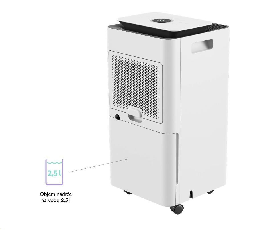Odvlhčovač automaticky detekuje plný zásobník vody, kterou kondenzuje ze vzduchu, vypne se a upozorní vás signalizací.