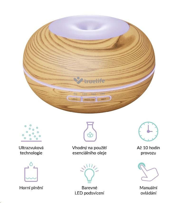 icle id="description_truelife_2019-11-19"> TrueLife AIR Diffuser D5 Light – Aroma difuzér a zvlhčovač vzduchu Stačí stisknutí jediného tlačítka a aroma difuzér Truelife provoní vzduch v místnosti vaší oblíbenou vůní. Vytvoří vám příjemnou atmosféru pro relaxaci, cvičení jógy nebo meditaci. Stačí do nádržky s... více