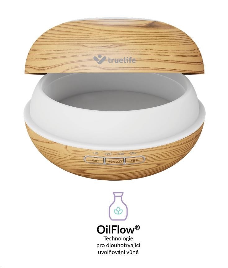 Stačí stisknutí jediného tlačítka a aroma difuzér Truelife provoní vzduch v místnosti vaší oblíbenou vůní. Vytvoří vám příjemnou atmosféru pro relaxaci, cvičení jógy nebo meditaci. Stačí do nádržky s vodou přidat pár kapek vašeho oblíbeného esenciálního oleje a OilFlow® technologie se postará o zbytek. Difuzér eliminuje okolní pachy a provoní vzduch v místnosti vaší oblíbenou vůní. Využijete ho i jako zvlhčovač vzduchu. Funguje na principu ultrazvuku, vodu v nádrži mění na jemnou páru, která se mísí se vzduchem v místnosti a téměř okamžitě jej zvlhčuje na optimální hodnotu.