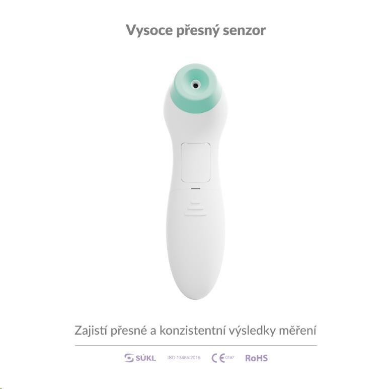 Díky technologii infračerveného záření dokáže teploměr změřit teplotu velmi přesně, s maximální odchylkou 0,1 °C.