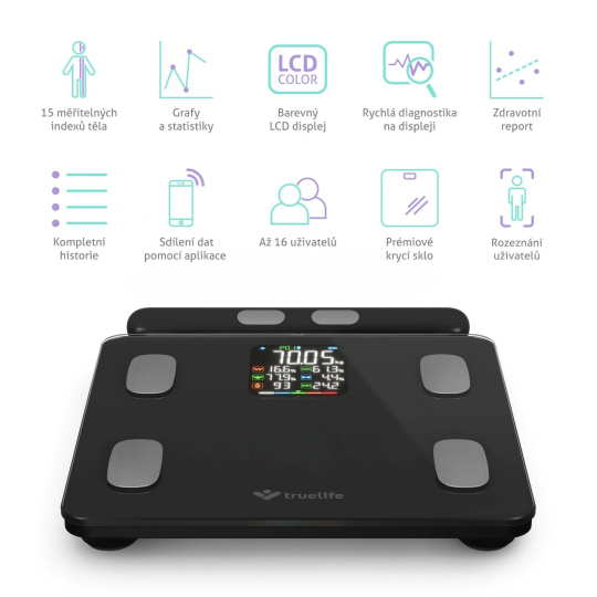 TrueLife FitScale W8 BT Black - osobní diagnostická bluetooth váha