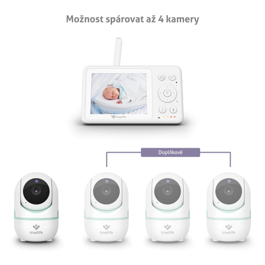 Pro pokrytí vícero prostorů a maximální přehled lze dokoupit až 4 kamery a napárovat je na rodičovskou jednotku.