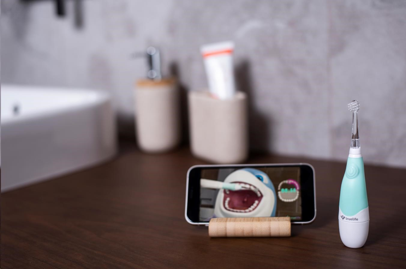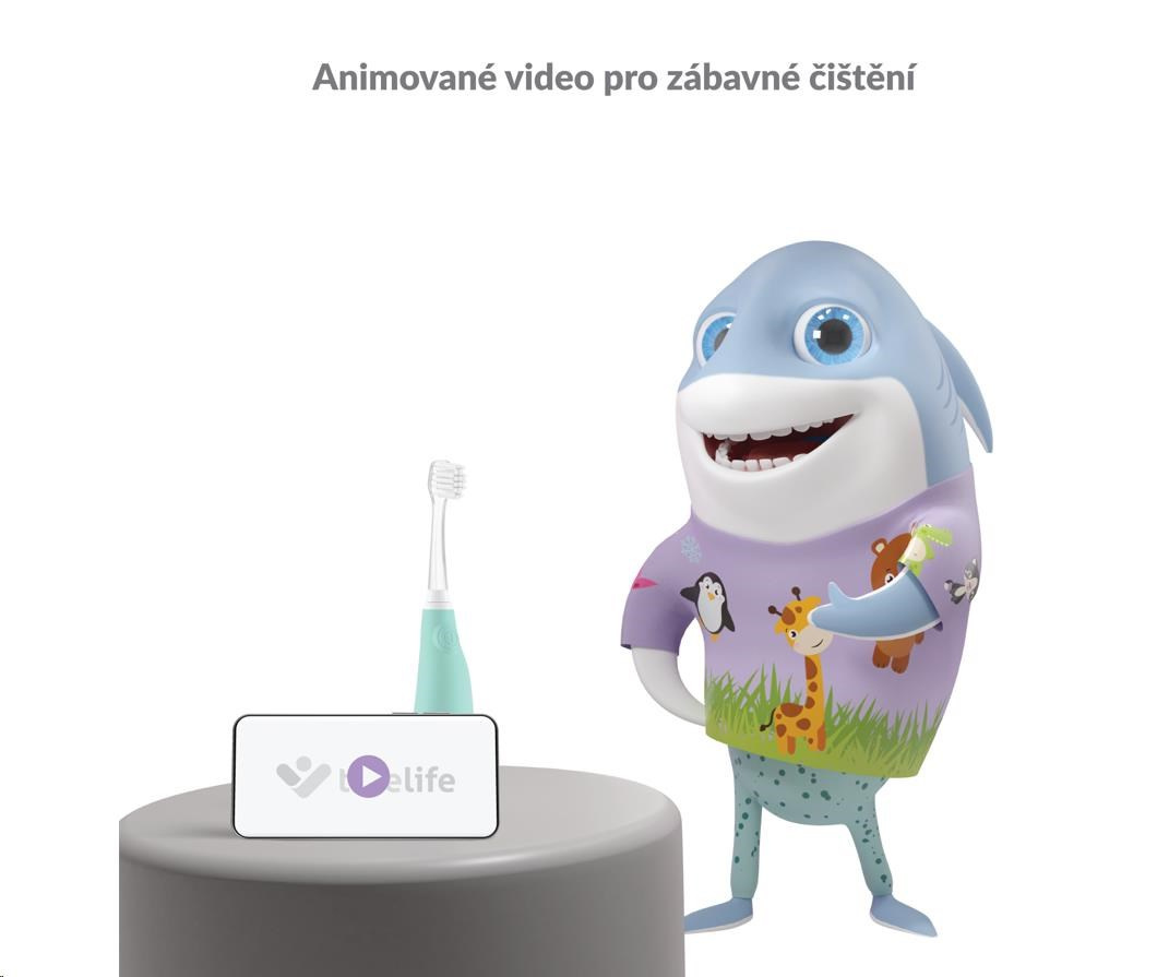 S kartáčkem TrueLife SonicBrush Baby G se jinak nudné čištění zubů může změnit na zábavnou aktivitu, na kterou se budou děti těšit. Výuková video animace, kterou si děti mohou pustit na mobilním telefonu nebo tabletu, provede celým čištěním. Děti vidí, jak si zuby čistit správně a dostatečně dlouho. Na konci čištění jsou děti odměny a natěšení na další čištění. Součástí balení jsou i nálepky se zvířátky. Děti si tak mohou kartáček ozdobit dle svých představ.