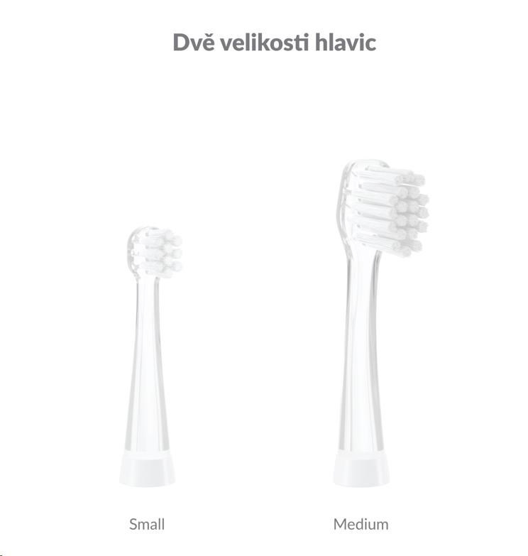 Součástí balení jsou 2 hlavice Small a 1 hlavice Medium, kartáček tak může používat více dětí. Jiné typy hlavic lze dokoupit.