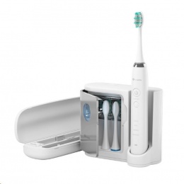 Sonický zubní kartáček SonicBrush UV se dokonale postará o vaše zuby. Pomocí vysokofrekvenční sonické technologie odstraní maximum plaku ze skloviny i dásní a přitom je mnohem šetrnější než obyčejné rotační kartáčky. K dispozici jsou hned 4 režimy čištění, které péči o váš zářivý úsměv ještě zjednoduší. Díky dlouhé výdrži baterie stačí kartáček nabít jen jednou za 10 dní a dodávaný UV sterilizátor zbaví jeho hlavice 99,9 % bakterií.