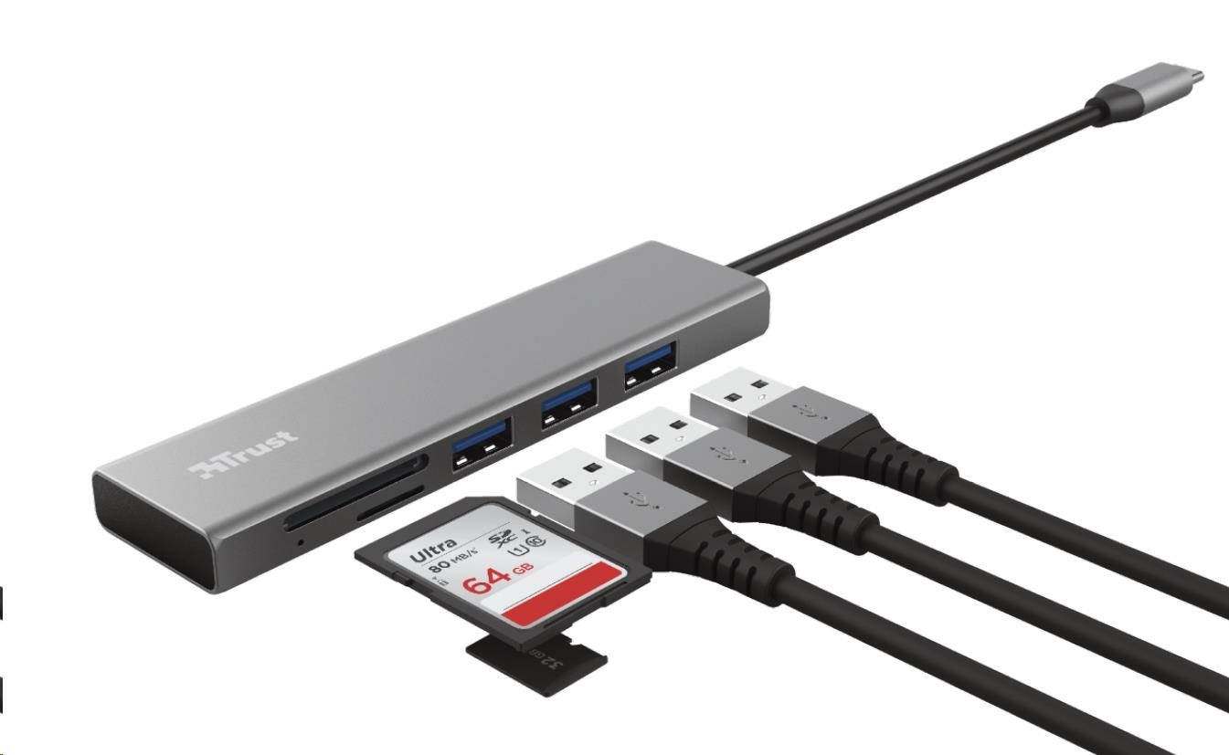 TRUST rozbočovač HALYX, Fast USB-C Hub & Card reader