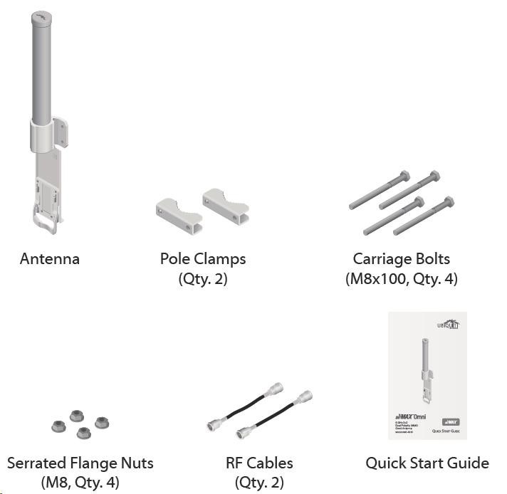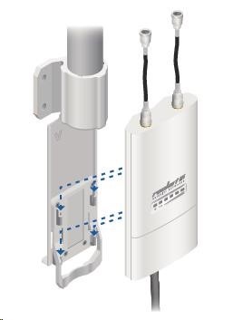 Jedná se o robusní řešení 10dbi všesměrové antény pro přístupové body pracující v pásmu 5GHz a využívajících standardu 802.11n v kombinaci s technologií MIMO. Anténa disponuje dvěma RSMA-female konektory. Součástí dodávky jsou dva voděodolné RSMA pigtaily pro propojení s jednotkou Rocket M5, držák pro tuto jednotku a montážní sada na stožár, viz. obr.