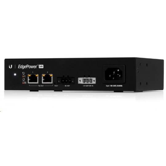 Pro připojení napájených zařízení jsou k dispozici 2 ethernetové porty s možností pasivního 54V PoE Out, rychlostí 100Mbps a 1 výstup na svorkovnici. EdgePower je možné spravovat přes aplikaci UNMS nebo ve vlastním webovém rozhraní. Samozřejmostí je podpora protokolu SNMP.
