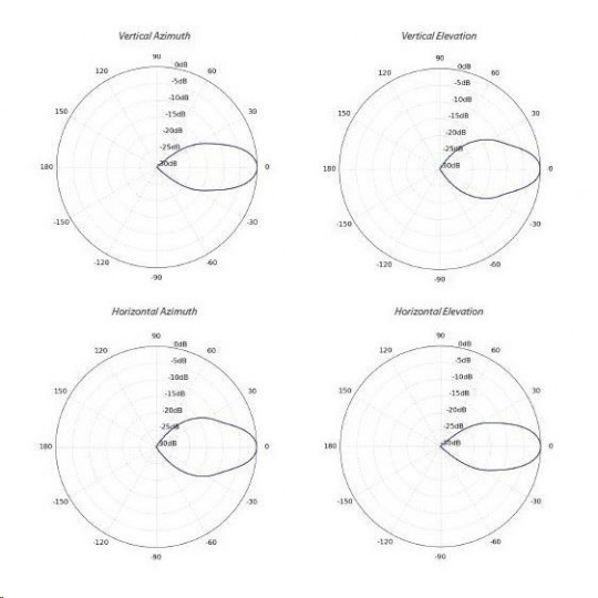 Sektorová anténa pro pásmo 5GHz se ziskem 2x19dBi (2x2MIMO). 30° úhel vyzařování je symetrický v H i V rovině. Anténa je vhodná do silně zarušených městských prostředí. Díky své konstrukci dosahuje vysokého SNR, bez postraních laloků s vynikajícím předo-zadním poměrem. Není nutné používat stínící plechy.