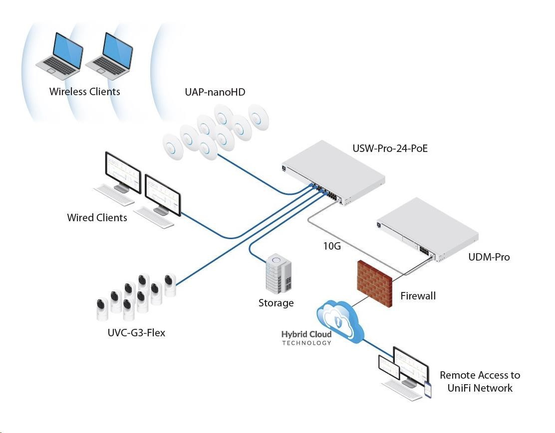 UniFi Dream Machine Pro od Ubiquiti Networks je all-in-one řešení sítě do menších a středně velkých firem. Jedná se o velmi výkonné zařízení o velikosti 1U do 19" racku a kombinuje tyto funkce: