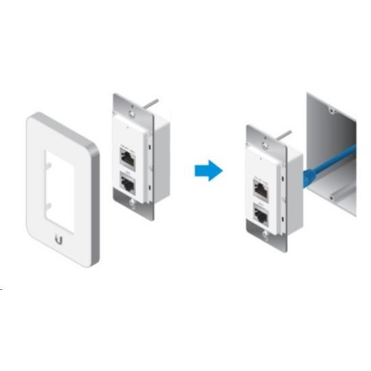 Ubiquiti UniFi AC In-Wall je velmi malé a diskrétní 802.11ac UAP zařízení pro montáž pod omítku. Jedná se o 2x2 MIMO 2,4GHz a 2x2 MIMO 5GHz Acess Point s přenosovou rychlostí až 1167 Mbps a podporou norem 802.11a/b/g/n/ac. UAP-AC-IW je určeno pro kanceláře a hotely. Anténní systém obsahuje 1 vestavěnou anténu se ziskem 1dBi pro pásmo 2.4GHz a 2dBi pro pásmo 5GHz s dosahem do vzdálenosti až 25 metrů. Plně podporuje také roaming při předávání asociovaných klientů mezi jednotlivými AP. Dále co se rozhraní týče, zařízení obsahuje 3x 10/100/1000Mbps LAN s podporou PoE IN na zadním portu a PoE Out na předním portu a to vždy přes PoE normu 802.3af.