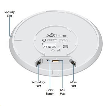 UAP-AC-PRO je určeno do vnitřních i venkovních prostor, nabízí rychlosti 450Mbps v 2.4GHz (3x3MIMO) + 1300Mbps v 5GHz(3x3MIMO). Napájení je realizováno aktivním PoE dle 802.3af/at. K dispozici jsou dva gigabitové ethernet porty.