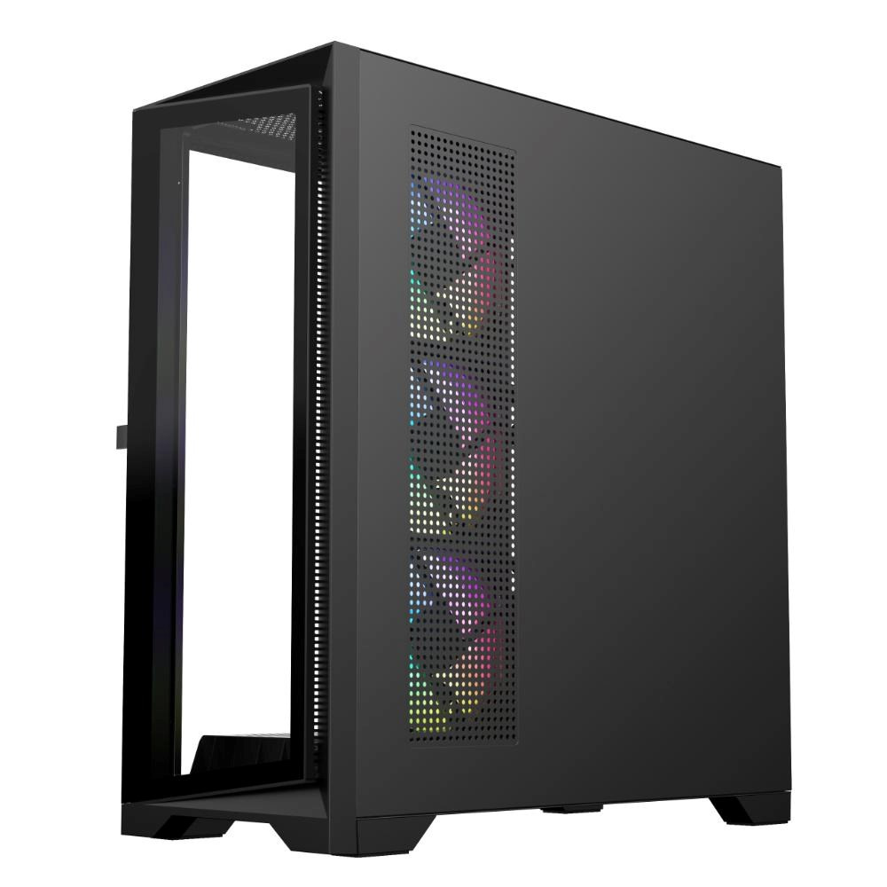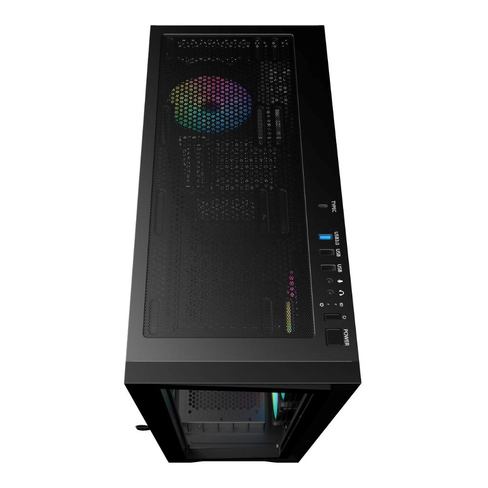 - Skříň ATX z tvrzeného skla s 360° panoramatickým výhledem