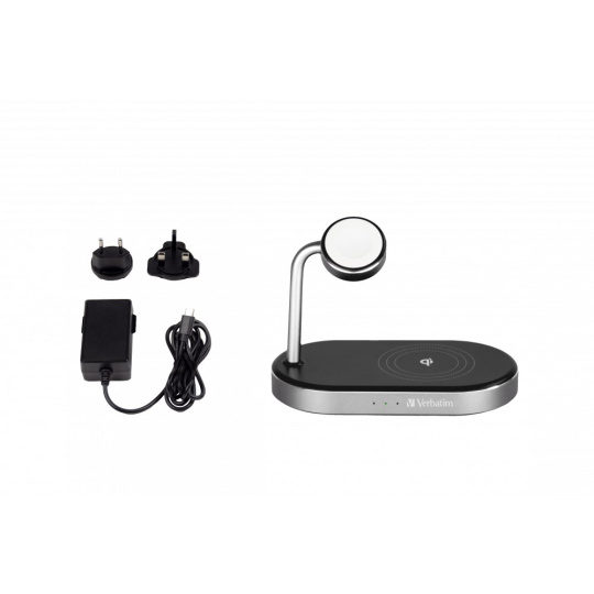 VERBATIM Bezdrátová nabíječka 3v1 Qi MFi pro IPhone a Apple Watch + QC 3.0 Nabíječka WCS-02