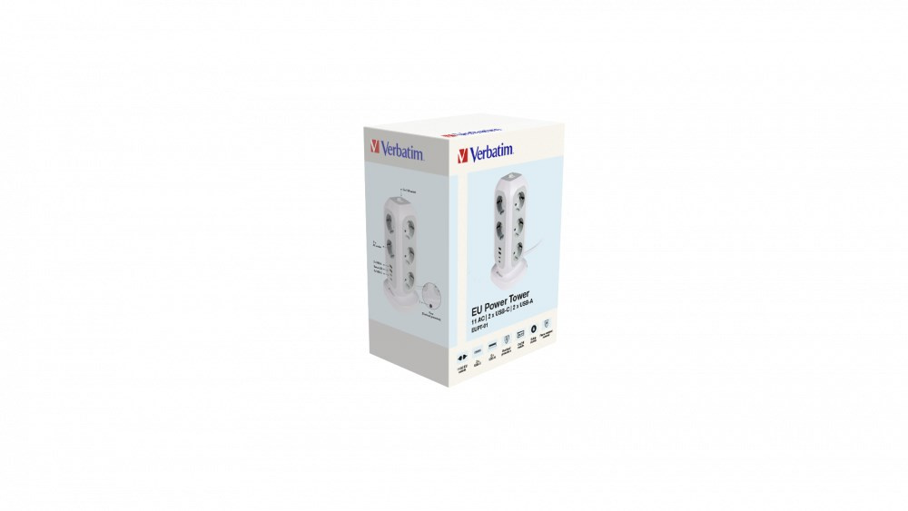 VERBATIM EU Power Tower EUPT-01 Nabíjecí stanice ,11x 230V, 2x USB-C, 2x USB-A